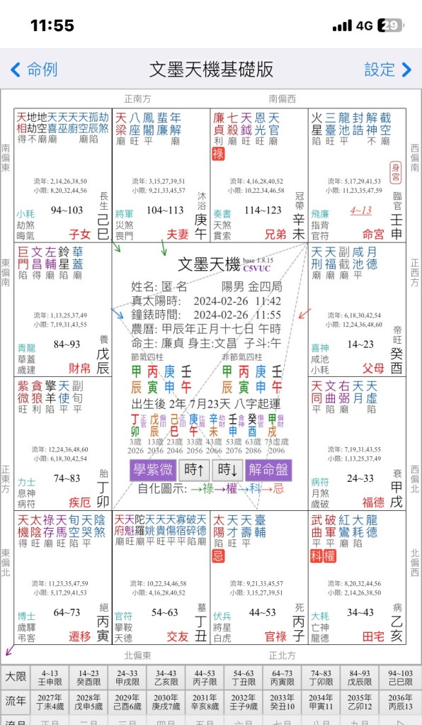 接著是生兒育女,田宅宮的事,對宮是子女宮,也牽涉資產問題,再來十年就是事業表現問題,能夠發展的,應該已是社會聞人。