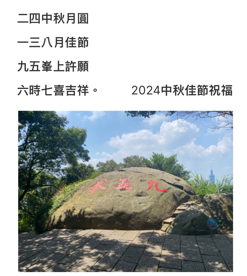 240917中秋節祝福 分類:藍蔻憲的職江湖2024-09-17發表於生活,感觸,歷史標籤:生命,生活 20240917中秋節祝福 分享此文: 按一下即可分享至 X(在新視窗中開啟) X 按一下以分享至 Facebook(在新視窗中開啟) Facebook 喜歡 正在載入... 相關 發表者:藍蔻憲的職江湖 寫自己的體悟、觀點,指向2050年的未來~ 檢視更多文章