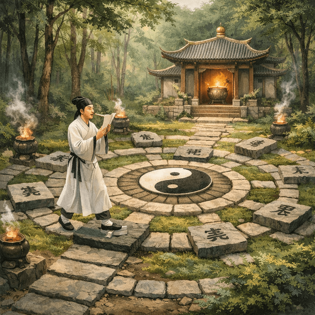 丹房外是森林,丹房路徑依照九宮八卦佈置,履一載九,二四為肩、六八為足、左三右七、五守中宮,進丹房時,得默念一屬坎兮、二屬坤、三震四巽數中分、五守中宮六亁是、七兑八艮九離門。