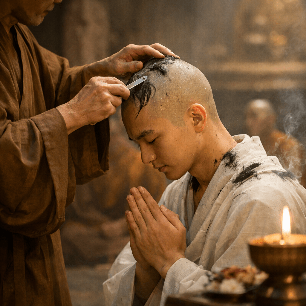 因為有如此傳說的故事,小曇來到五台山寺,求大和尚為其圓頂出家,身入佛門。