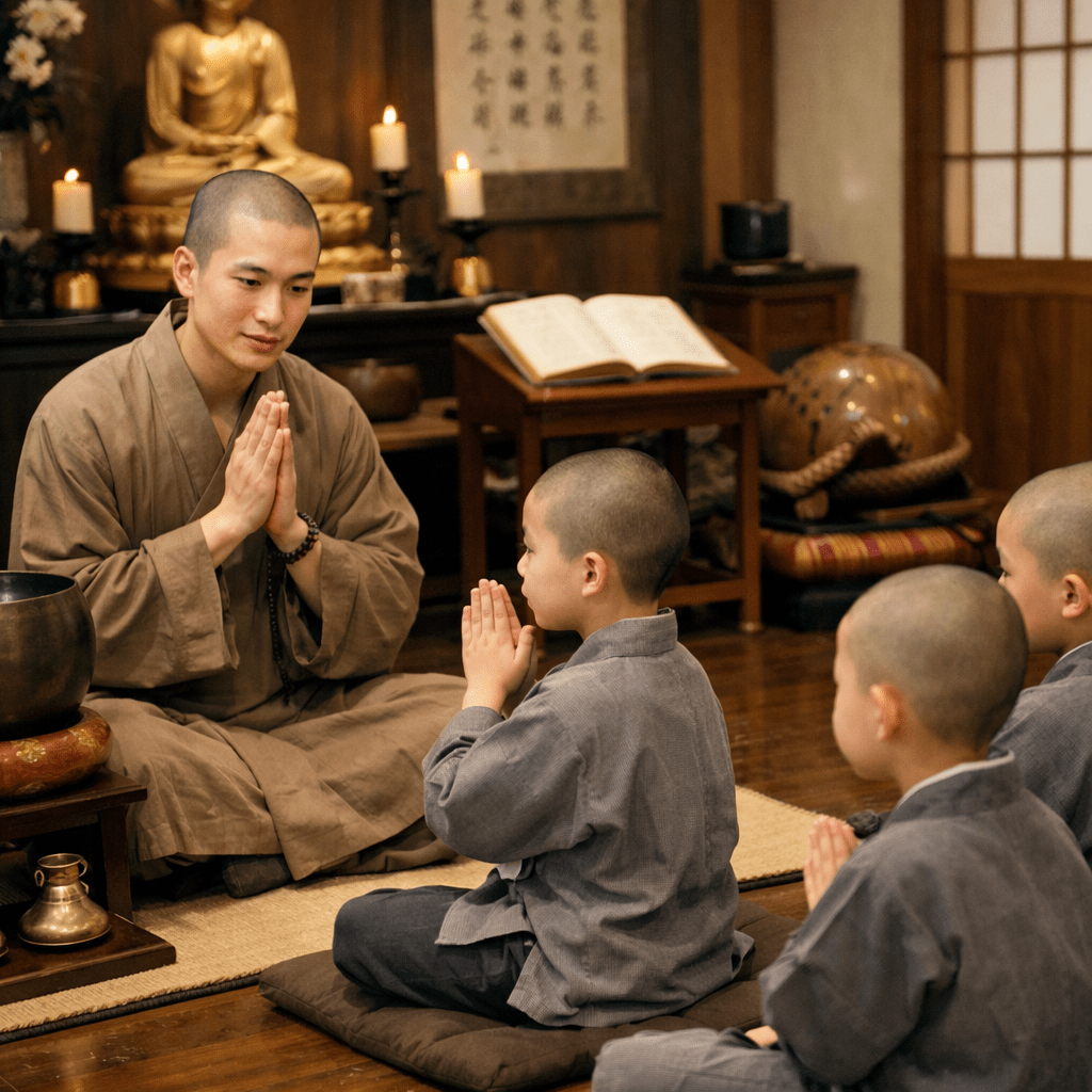 新進的學僧,眼神中帶著不安與生澀,正如當年的自己。